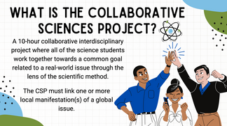 The purpose of the CSP is to give students in the IBDP and Career-related program (IBCP) an opportunity to collaborate in an interdisciplinary team. Tackling a local manifestation of a global issue through the lens of the scientific method. The focus of the CSP is on process rather than product and the collaborative skills students develop over the course of the 10 hours of the project.